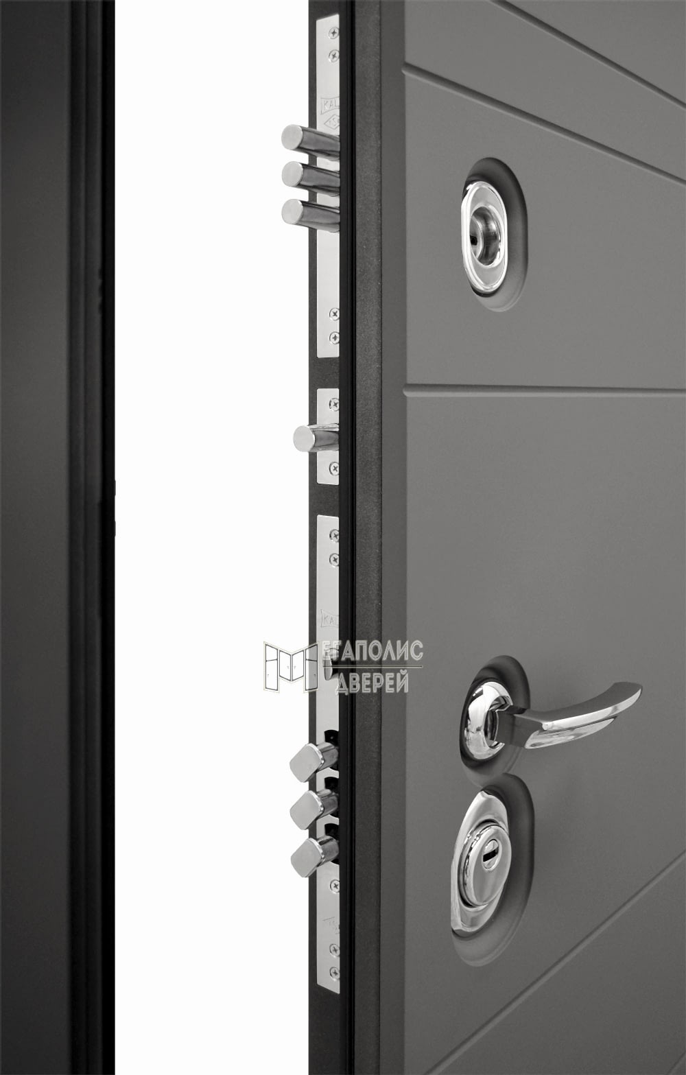 Дверь устанавливается на усиленные Pin-Up с возможностью открывания на 180° в правую или левую сторону - в зависимости от расположения квартир на лестнице.