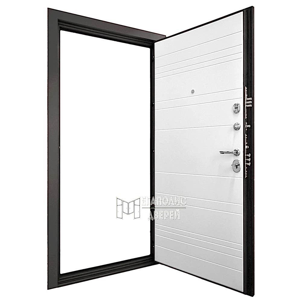 Металлическая конструкция коробки с тремя контурами уплотнения по периметру Pin-Up от шума и неприятного запаха из подъезда. Полотно со стальным сердцем и качественным звукоизоляционным наполнителем позволит сохранить в доме тепло и уют.